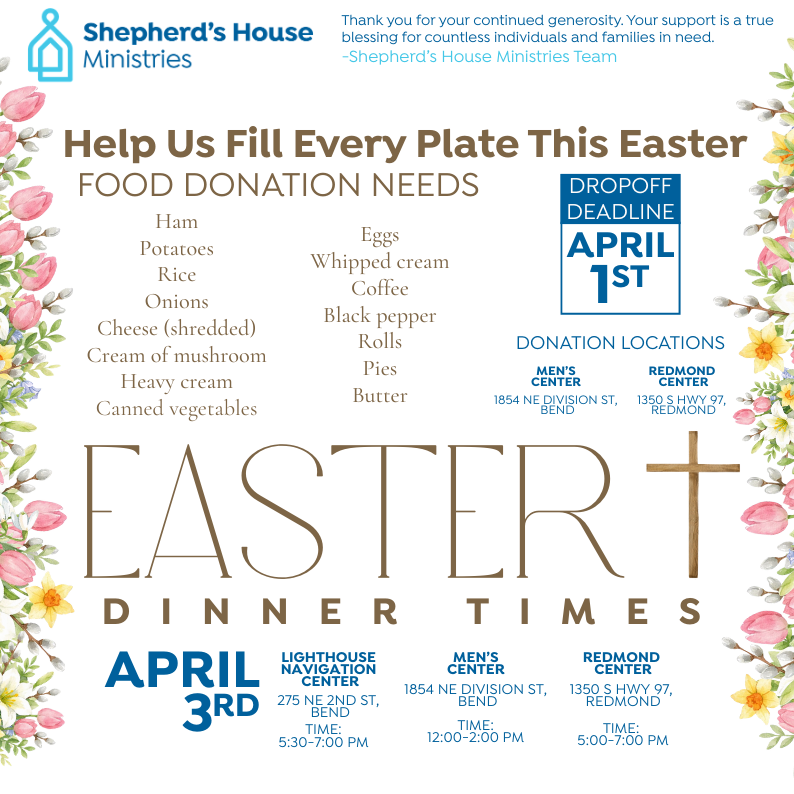 We create pathways to lasting transformation by providing shelter, food, connection to services, and community. Shepherd’s House Ministries extends grace to all through safe, healing environments across Central Oregon.