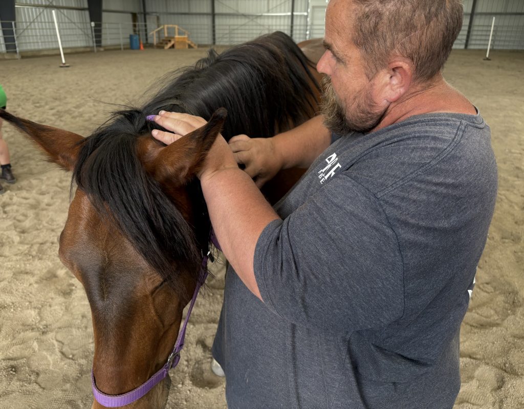 Laura has been a horse person her entire life. She got her first horse at 13, during a difficult time at home when she needed a safe, loving companion. That horse became her best friend, providing constant connection and trustworthiness. She found purpose and built her self-esteem, which had been lacking before. Currently, Laura collaborates with Sturrup Purpose and their volunteers to offer similar relationships to participants at the Lighthouse Navigation Center. Although trained as a psychotherapist, Laura finds Equine Healing to be a helpful addition for individuals who have learned that trusting humans can lead to bad outcomes. As participants develop a relationship with a horse over time, they can share grief and trauma in a safe, non-judgmental environment. Once a horse knows and trusts that it will be safe with someone, it will physically respond by resting its head on a shoulder or approaching closely. Laura views this as a way to practice human connection. She began volunteering with Shepherd’s House Ministries because she wanted others, who might not have access to this type of connection, to have the chance to build their sense of belonging, self-esteem, and purpose.